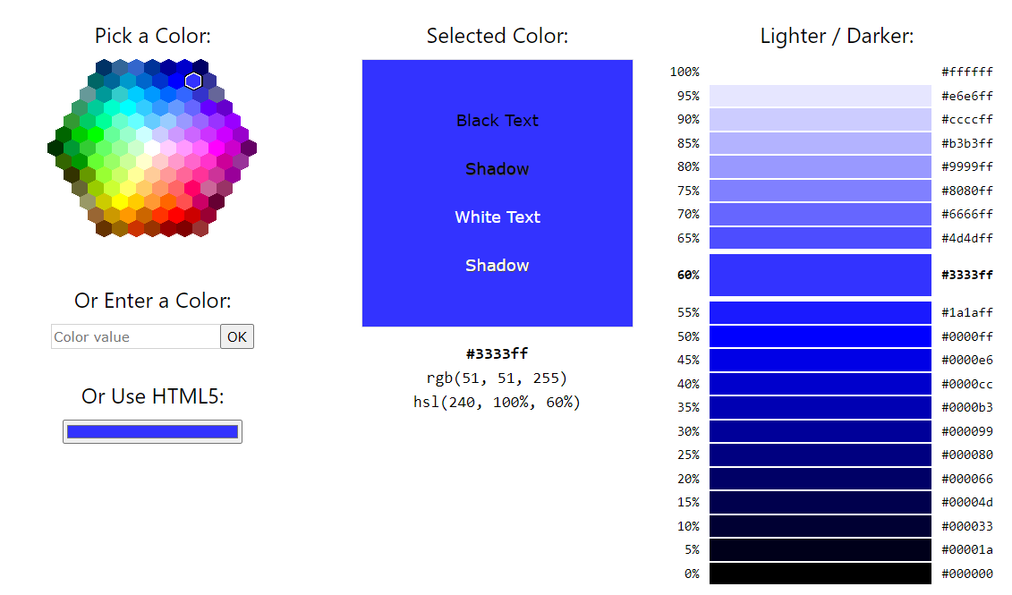 Ligntness : 0~100의 밝기 값. 0%은 검정색, 100%은 흰색, 50%일 때 원색이다.