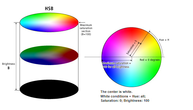 인간의 눈은 색조, 채도 및 밝기 (HSB)의 세 가지 특성 측면에서 색상을 인식하기 때문이다.
