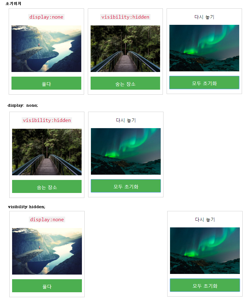 visibility:hidden 역시 element를 안보이게 만드는 css 속성이다.
