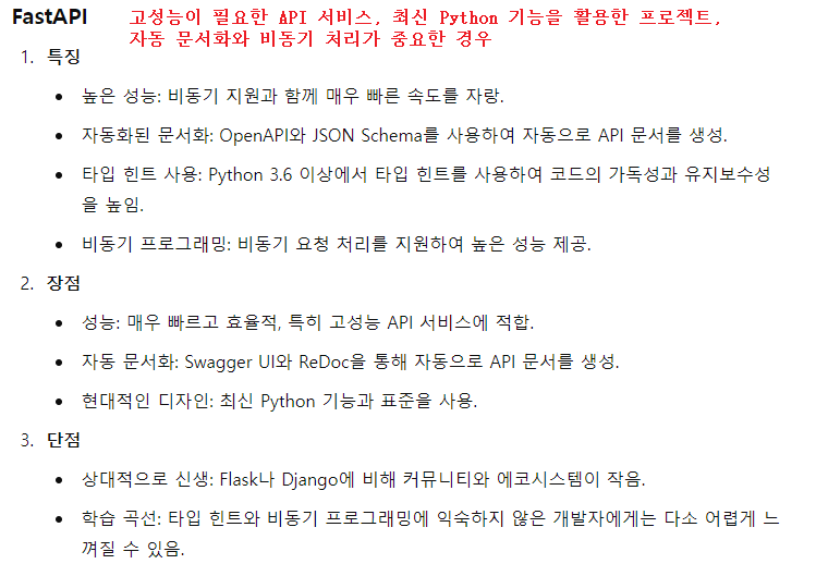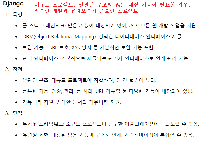 파이썬 웹프레임워크를 비교하면 다음과 같다.